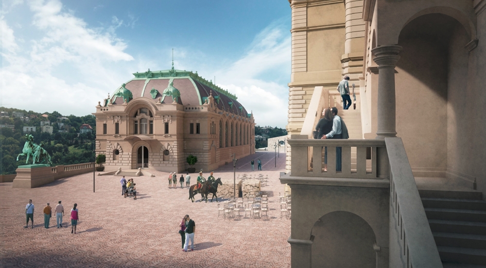 A most kezdődő rekonstrukció azonban még annál is több, két gyönyörű, kiemelt helyszínen lévő épület újjáalkotását is jelentheti. Az esztétikai szempontok mellett ugyanis turisztikai és várospolitikai megfontolásból is nagy eredmény, hogy az eddig gyakorlatilag zsákutcaként működő Hunyadi- és Oroszlános udvarokat újra összekapcsolja a palota alatti kertekkel.