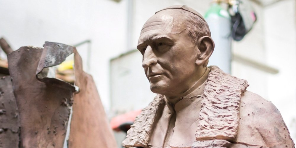 Készül a Mindszenty József hercegprímást ábrázoló szobor, a fotón Pallavicini-Mindszenty emlékmű részlete látható a Szabó Öntészeti Kft. X. kerületi bronzöntödéjében 2016. október 4-én. Bahusa János szobrászművész alkotását, a világ első köztéri szárnyasoltár térplasztikáját, az 1956-os Emlékbizottság támogatásával állítják fel Rétságon.