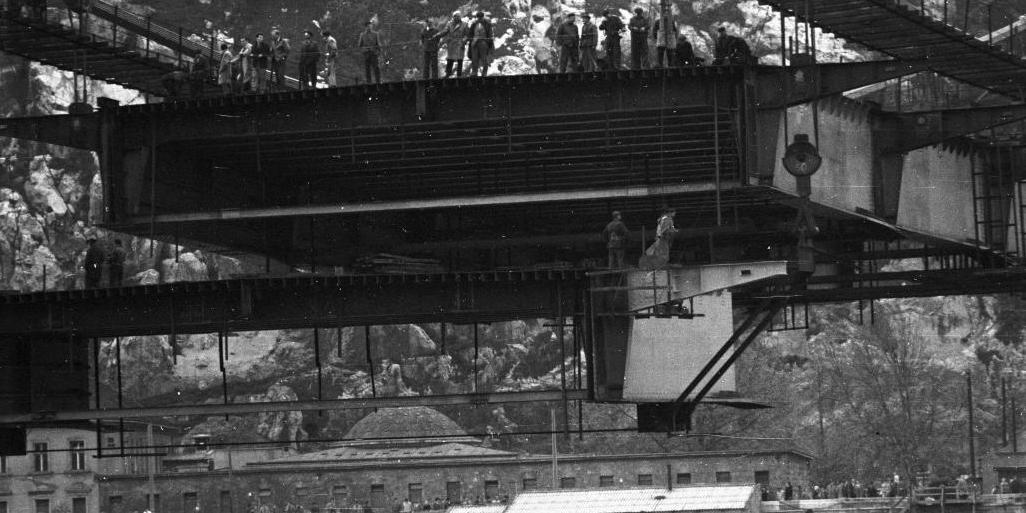 Épül az új híd! Azóta nem szűnik a vita, szebb lett-e, mint a régi, vagy legalább szépségben valamennyire megközelíti-e azt. Mindenesetre a platánt szerencsére tiszteletben tartották, nem vágták ki egy autós lehajtó építésének érdekében (ellentétben a társaival, a híd túloldalán).