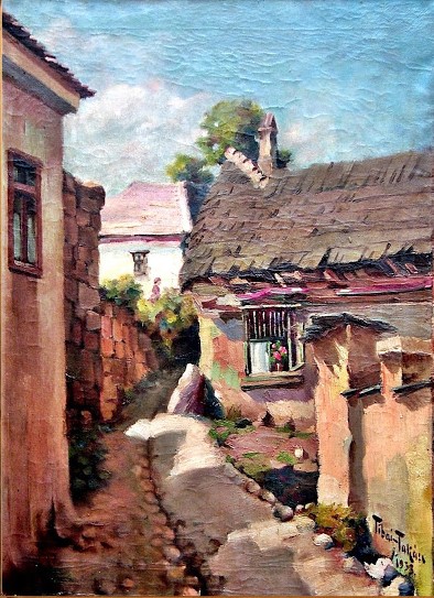 A Holdvilág utca 14. számú ház kapuja mögé is bepillanthatunk ezen a festményen (Forrás: Patyi Árpád gyűjteménye)