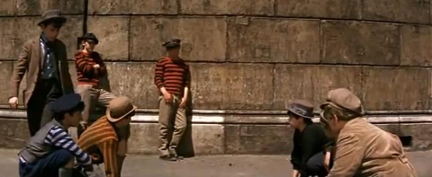 A Pál utcában minden telken állt ház a film forgatásakor 1968-ban, így más helyszínt kellett keresni. A XIII. kerületi Gogol és a Visegrádi utca sarkán alakították ki a grundot. A képen jelenet a filmből (Forrás: mafab.hu)