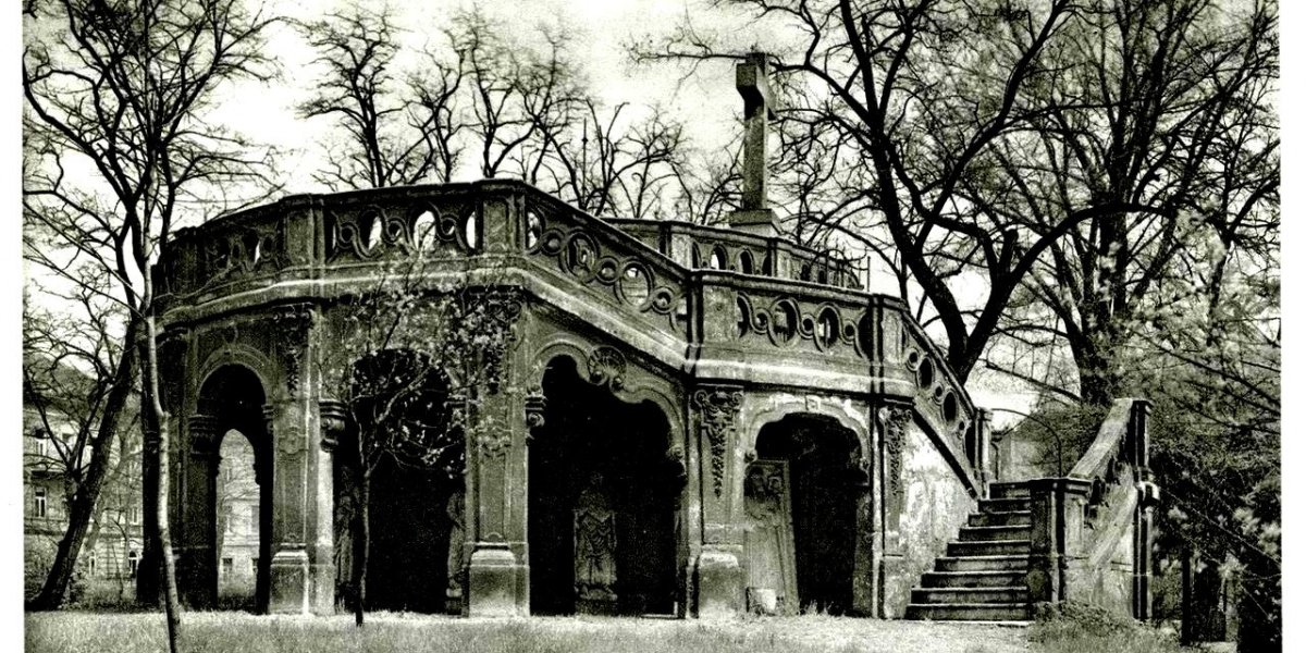 A kálvária ódon építményét megtépázta a történelem, a világháborúban is súlyos károkat szenvedett (Forrás: FSZEK Budapest-képarchívum)