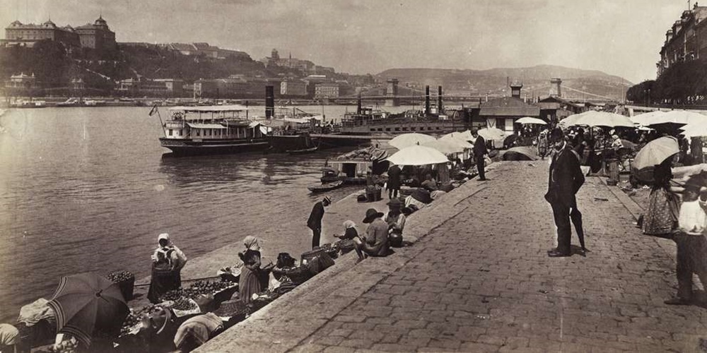 A pesti rakpart 1900-ban (Forrás: Fortepan/Budapest Főváros Levéltára. Levéltári jelzet: HU.BFL.XV.19.d.1.07.004)