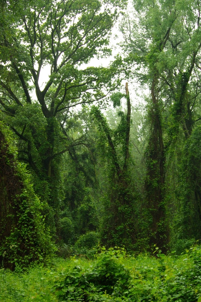 Kúszónövényekkel benőtt fák a szigeten (Forrás: dunaipoly.hu/Novák Adrián)