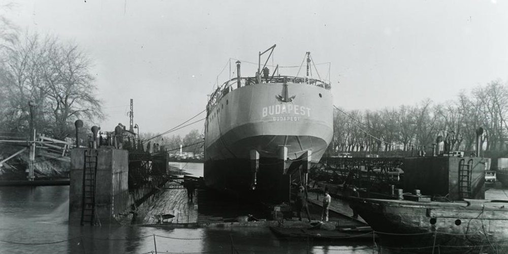 A Budapest 1934-ben az úszódokkban (Fotó: Fortepan/Magyar Műszaki és Közlekedési Múzeum Ltsz: 21608)