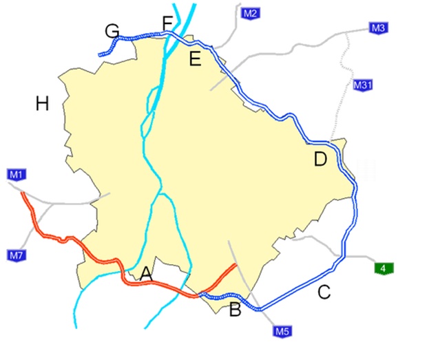 Az M0-s jelenlegi kiépítése és a tervezett északi bővítés (Fotó: Wikipédia)