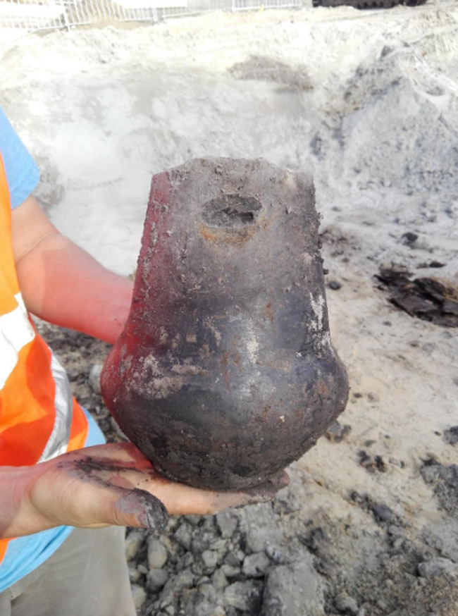 Rézkori agyagedény a kiemelés pillanatában (Fotó: Aquincumi Múzeum)