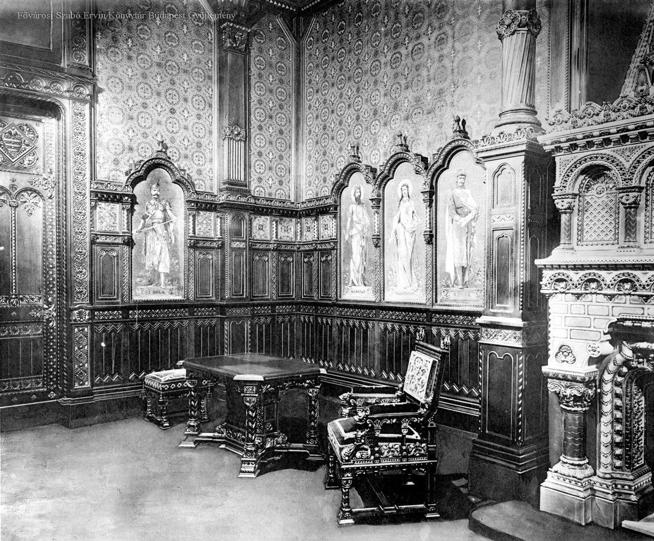 A Szent István-terem részlete Divald Károly fotográfiáján (Fotó: FSZEK Budapest-képarchívum)