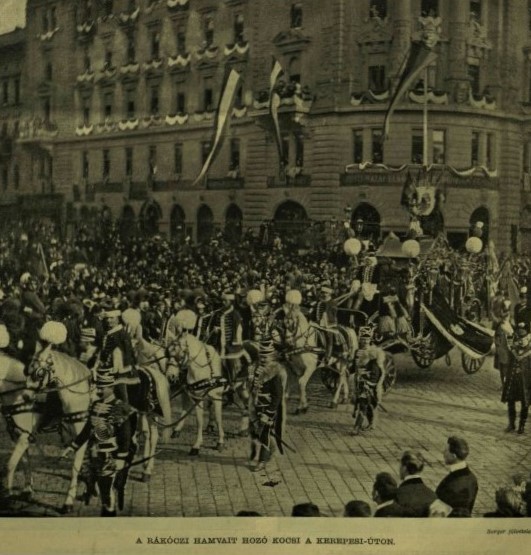 II. Rákóczi Ferenc újratemetése 1906-ban, a hamvakat szállító kocsi a Kerepesi úton (Forrás: Vasárnapi Ujság, 1906. november 4.)
