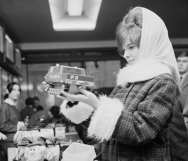 Játékvásárlás a Deák Ferenc téri Hobby boltban, az Anker ház épületében 1968-ban (Fotó: Fortepan)