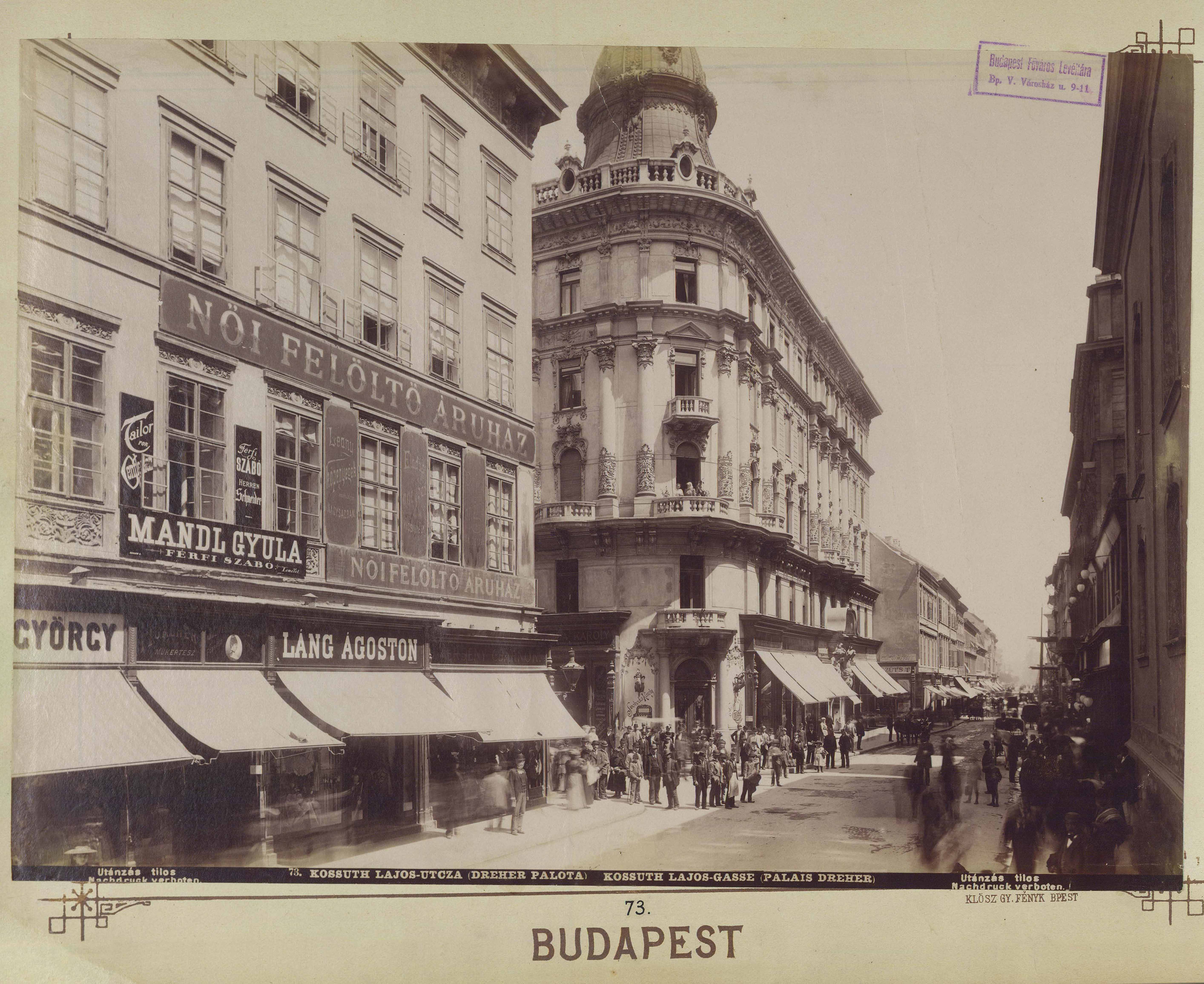 A Kossuth Lajos utca a Ferenciek tere (Kígyó tér) felől nézve. A felvétel 1894 körül készült (Forrás: Fortepan/Budapest Főváros Levéltára. Levéltári jelzet: HU.BFL.XV.19.d.1.07.074)
