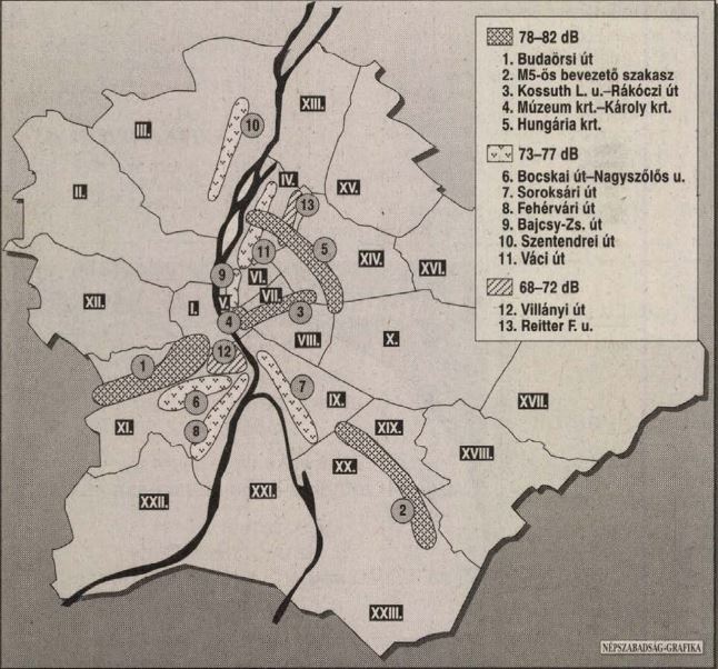 „Budapest lakosságának fele él zajszennyezett területen” – írja a Népszabadság Budapest melléklete 1995. január 24-én. „A fővárosi közlekedési környezetszennyezésnek ugyanis csak egyik összetevője a légszennyezés, a járművek okozzák ugyanis a város zajterhelésének jelentős részét is.”