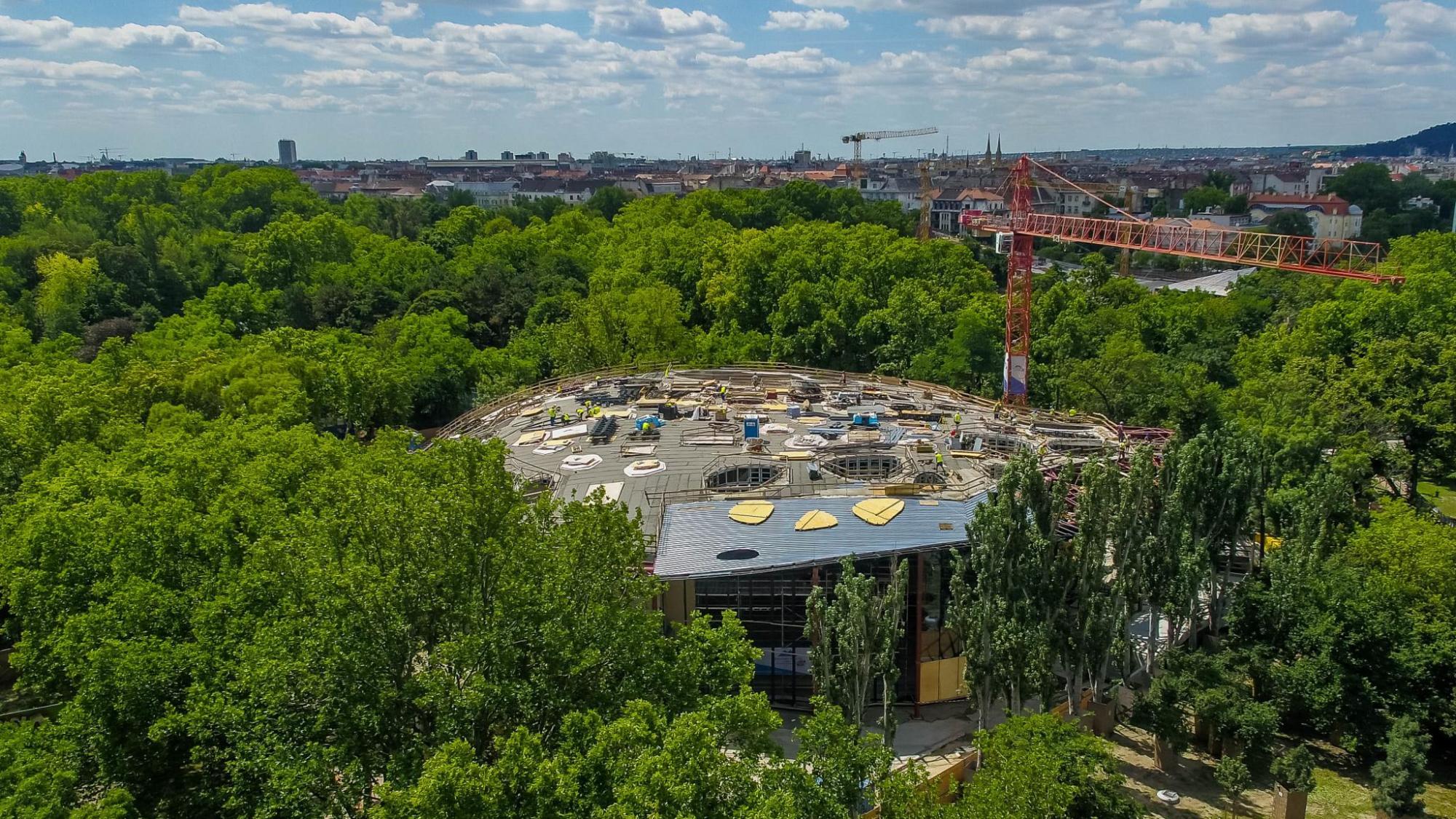 A Magyar Zene Háza szerkezetkész állapotba került, az épület kivitelezése jó ütemben halad előre, folytatódik a ház „láthatatlan falának” építése(Fotó: Városliget Zrt.)