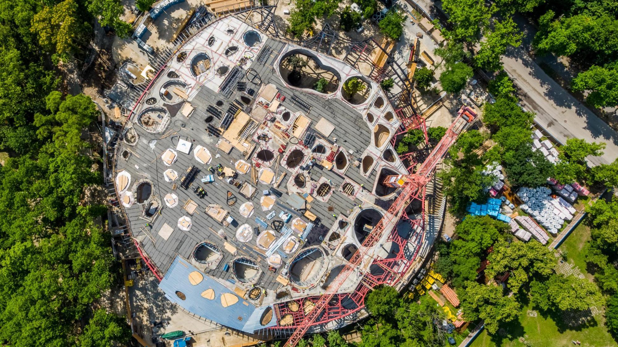 A tetőzetében szinte nincs két párhuzamos elem, nincs derékszög, minden egyedi, felületét közel 100 egyedi tervezésű lyuk töri át (Fotó: Városliget Zrt.)