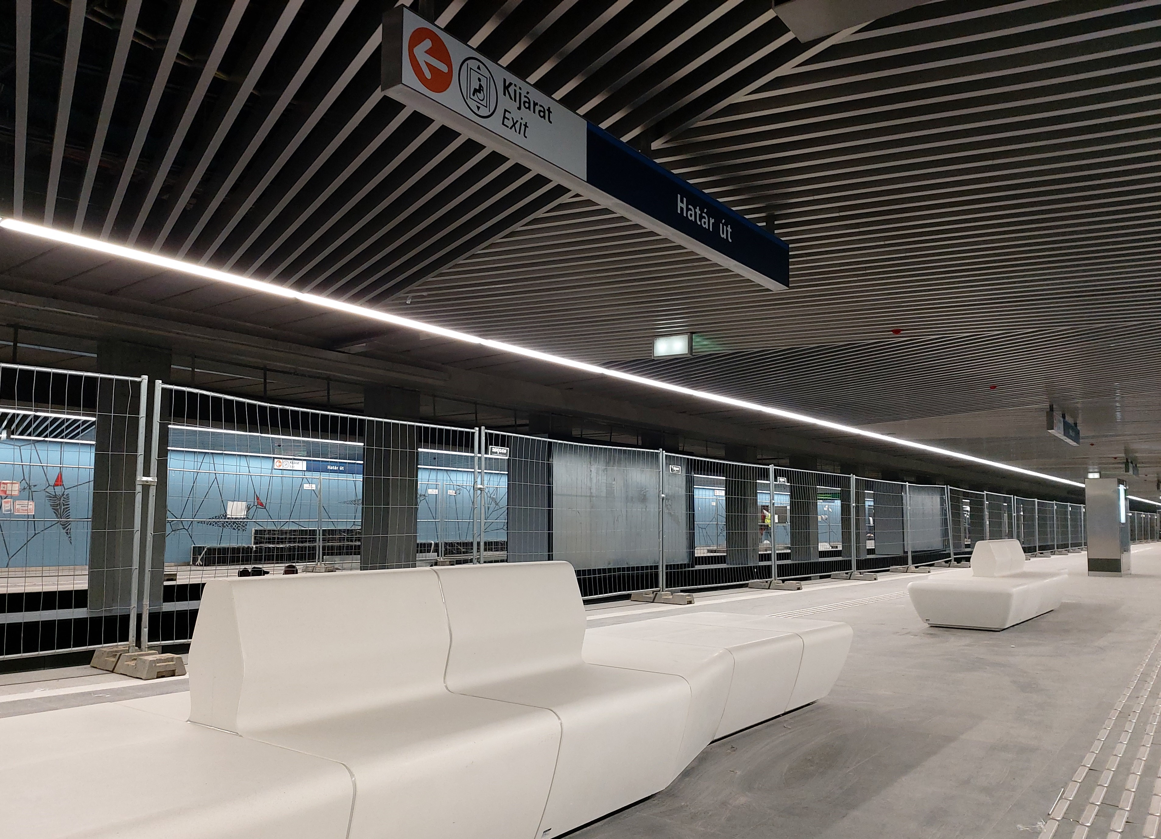 Különleges padok és látványos falmintázat a felújított határ úti állomáson (Fotó: BKV Zrt.)