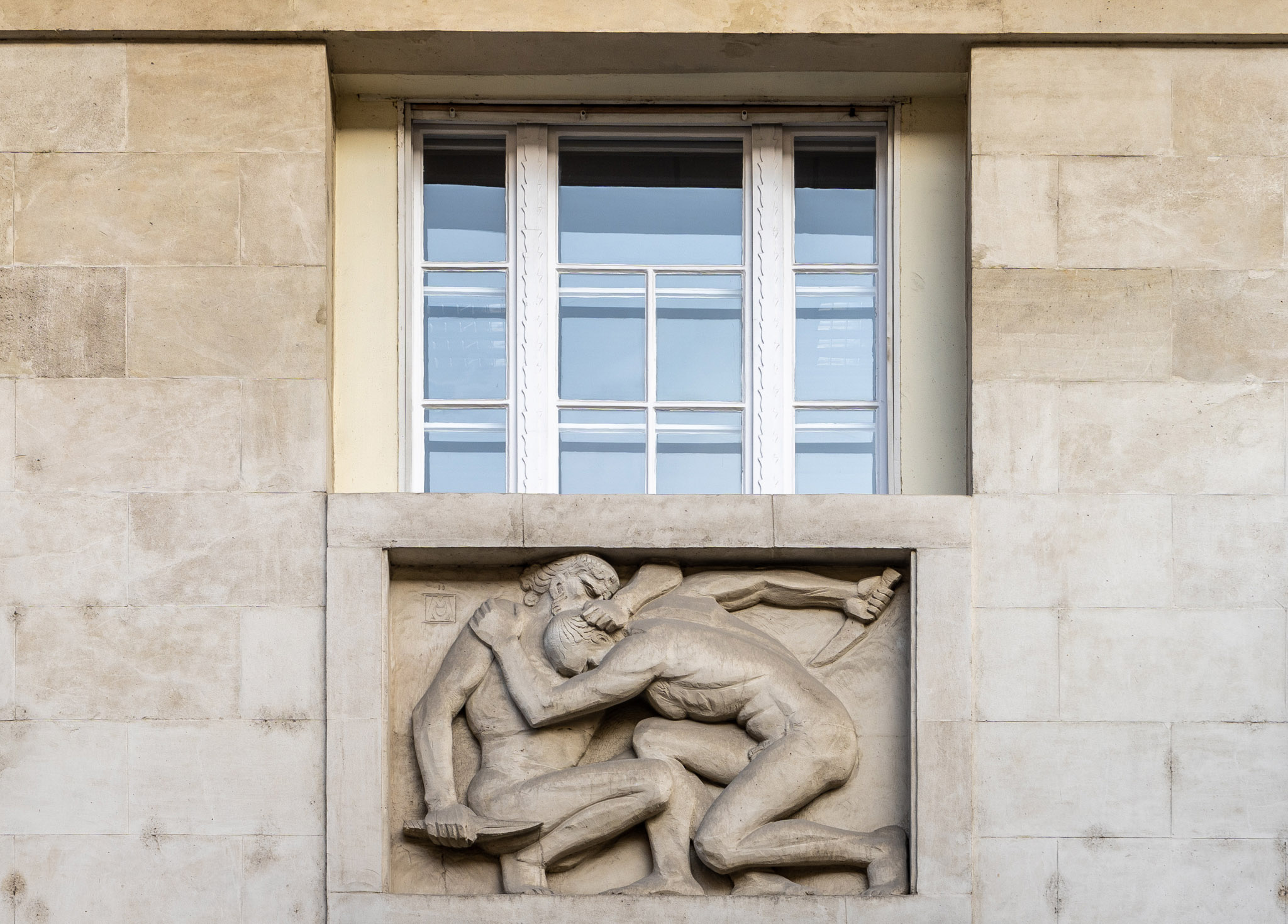 A Moiret Ödön által készített dombormű az egykori Festetics-palota homlokzatán. A művész a monogramjával is ellátta alkotását (Fotó: Both Balázs/pestbuda.hu)