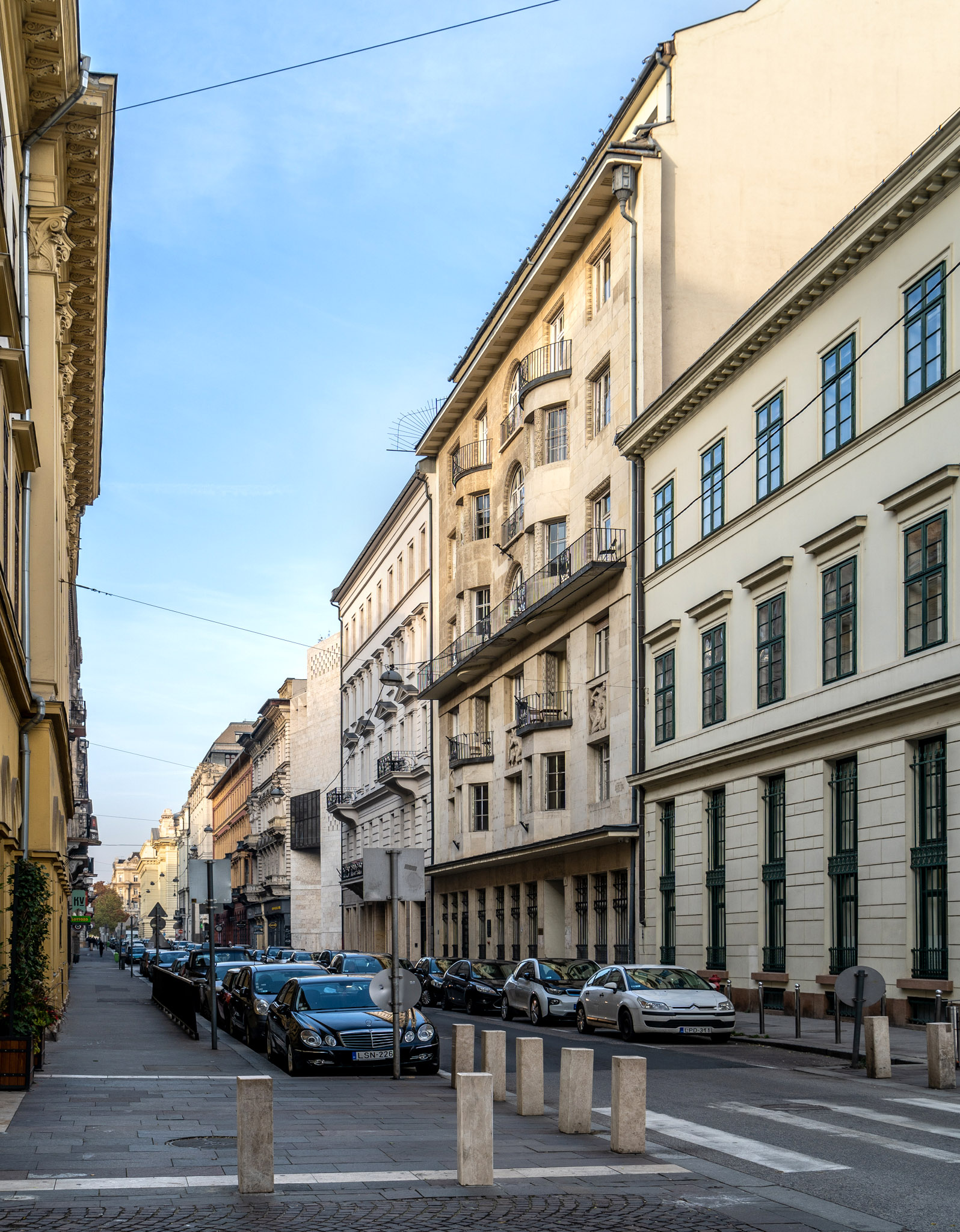 A Jánszky–Szivessy-építészpáros tervezte ház jól megfér a Nádor utcában a Pollack Mihály (Nádor utca 9.) és a Hild József (Nádor utca 13.) tervezte klasszicista épületek között. Ma mindháromban a Közép-európai Egyetem (CEU) működik (Fotó: Both Balázs/pestbuda.hu)