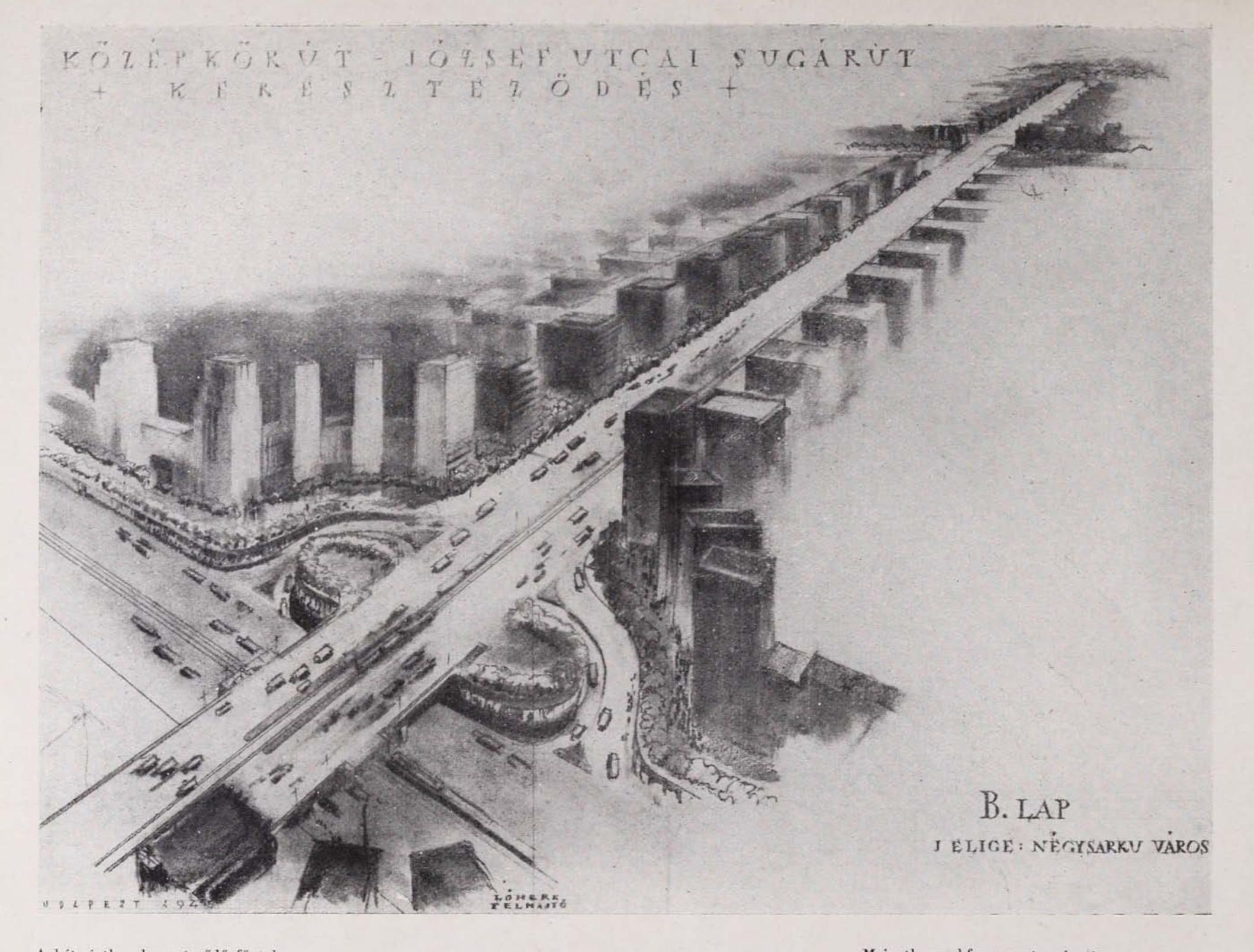 A centrálisan fejlődő főváros régi városközpontja a Belváros tehermentesítésére a város négy sarkán (Négysarkú város) a Nyugati téren, az Üllői út, Ferenc körút kereszteződésénél, Kelenföldön és a Magyar jakobinusok terénél tervezett új központokat. A közlekedést, főleg a beérkező gyorsvasutak átszállóhelyeit ide képzelte. Hasonló rendszerrel kívánta kialakítani a hét peremvárosi központot is. Sok, addig beépítetlen területre parkokat, zöld felületeket képzelt el. A tömegközlekedés terén a kötöttpályás utak fejlesztését látta célszerűnek.