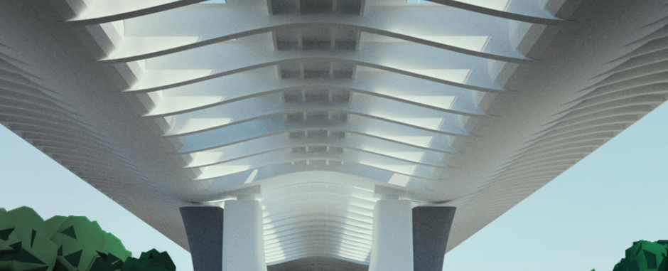 „Az igazi építészeti izgalmat az adja, hogy a hídpályát áttörik, a középső villamospályák mindkét oldalán egy-egy öt és fél méter széles hosszanti felsliccelés teszi sokkal légiesebbé a hidat. A megoldás a híd alatti területek funkcionalitása szempontjából kulcsfontosságú. A vízfelület és a parton a híd alá kerülő részek így világosak, barátságosak lehetnek.”