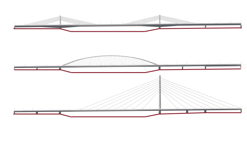 Különböző lehetőségeket vizsgáltak, extradosed, ív- és ferdekábles megoldásokat is (Forrás: BFK)