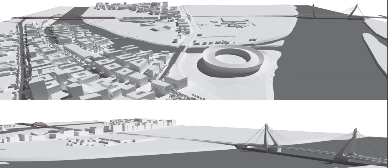 Egy dologról viszont kevés szó esett, arról, hogy a Galvani út vonalába tervezett híd valójában két hidat takar. A nagy Duna-hídról sokat írtak a lapok, a képe közismert, mi is bemutattuk. A tervezőt és az elképzelést is egy nemzetközi pályázati folyamat során választották ki. Azonban a tervezett átkelő két hidat takar, hiszen a nagy híd „csak” Csepelig vezet, de Csepelről Pestre is el kell valahogy jutni.
