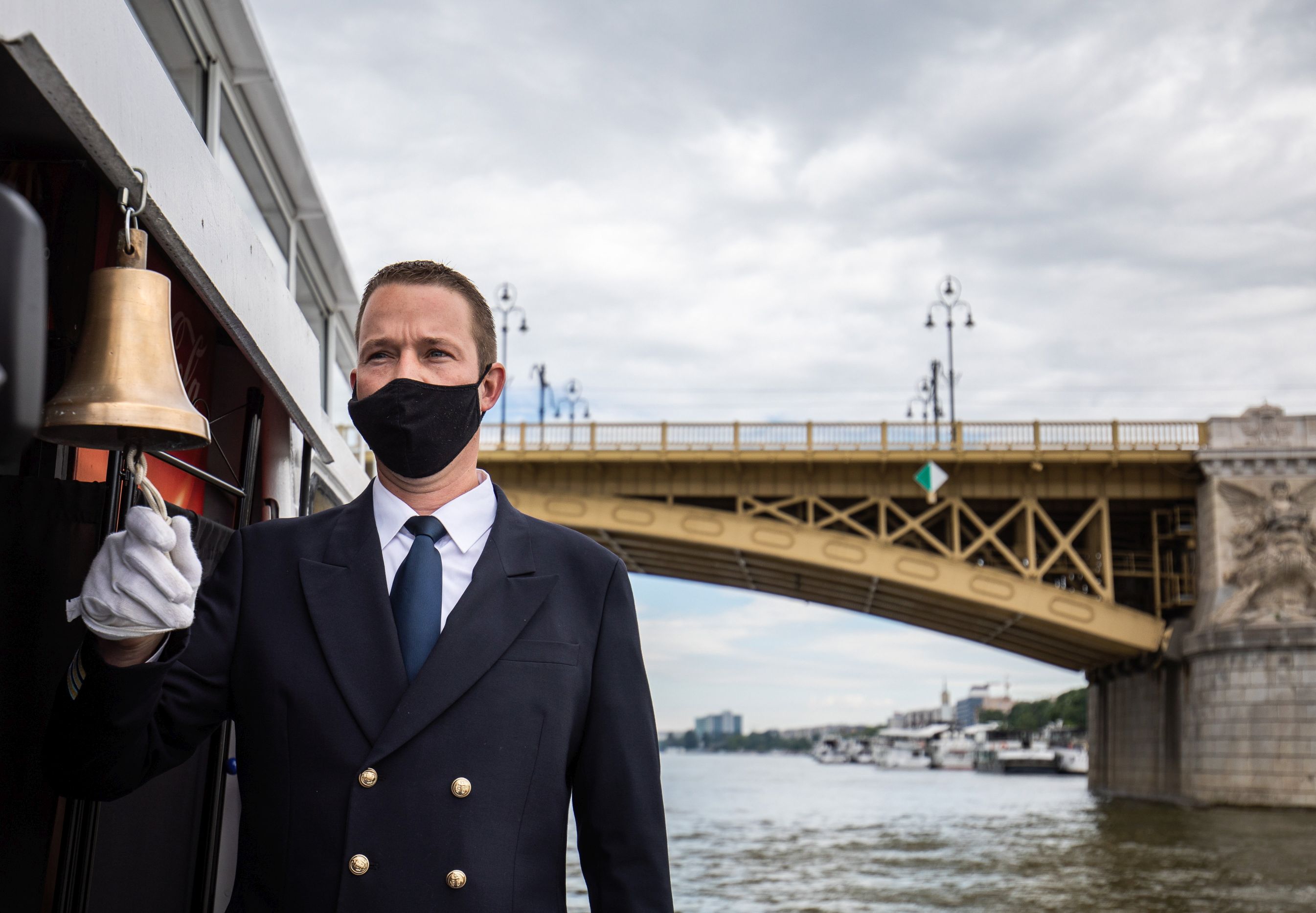 Matróz kongatja meg a harangot a Dunán tartott megemlékezésen (Fotó: MTI/Mohai Balázs)
