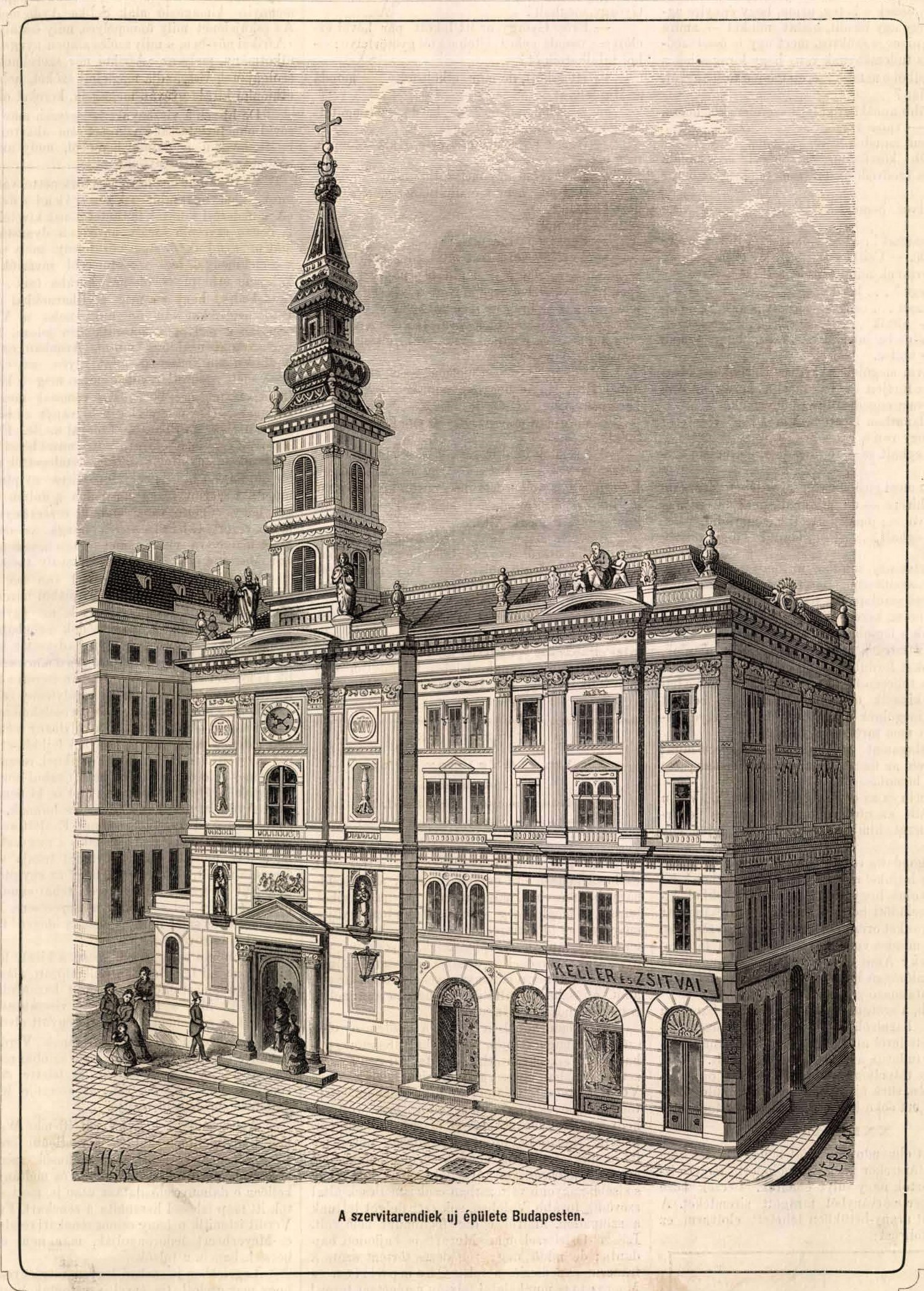 A szervita templom megújult épülete és tornya 1875-ben (Forrás: Magyarország és a Nagyvilág, 1875. április 18.)