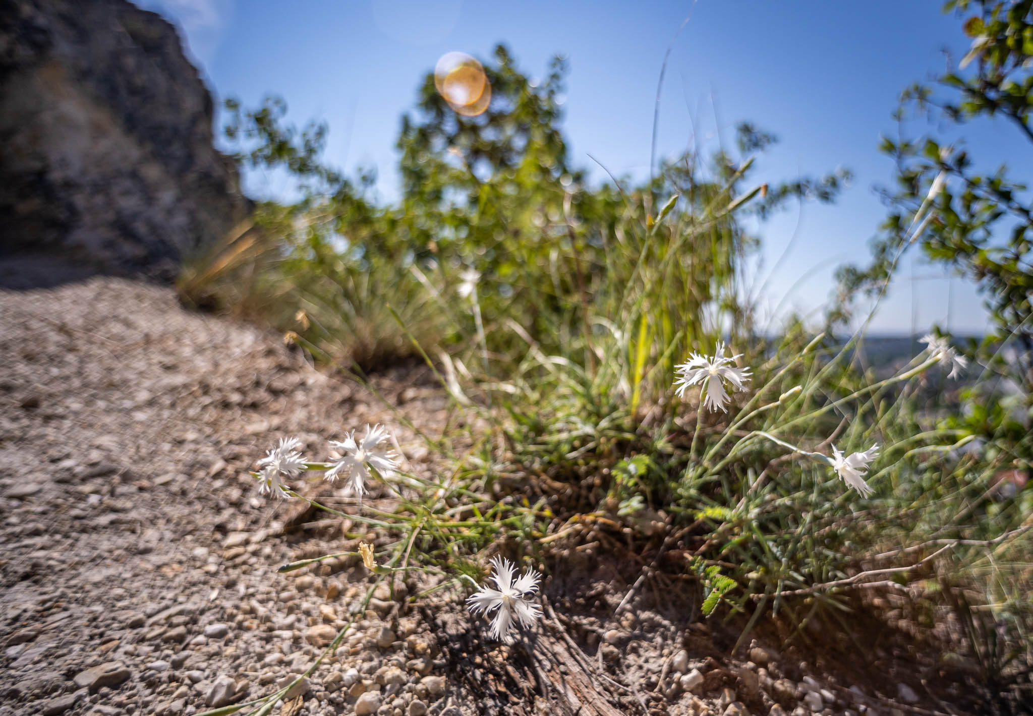 A déli lejtőn aztán igazi növényritkaságok fogadtak minket: István király-szegfű, magyar gurgolya, közönséges csikófark. Ez utóbbi azért is érdekes, mert kétlaki növény, azaz a termős és a porzós növényszervek nem egyazon egyeden találhatóak meg. A Sas-hegyen a porzósok, míg a légvonalban innen 3 km-re lévő Gellért-hegyen csak termős egyedek nőnek.