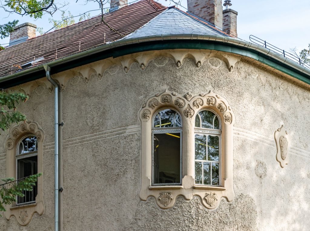 A műemléki kutatás során dokumentálták az épület díszítését, többek között az ablakok körül látható medalionos ornamentikát (Forrás: Rákospalota Pestújhely és Újpalota Helytörténeti Gyűjteménye)