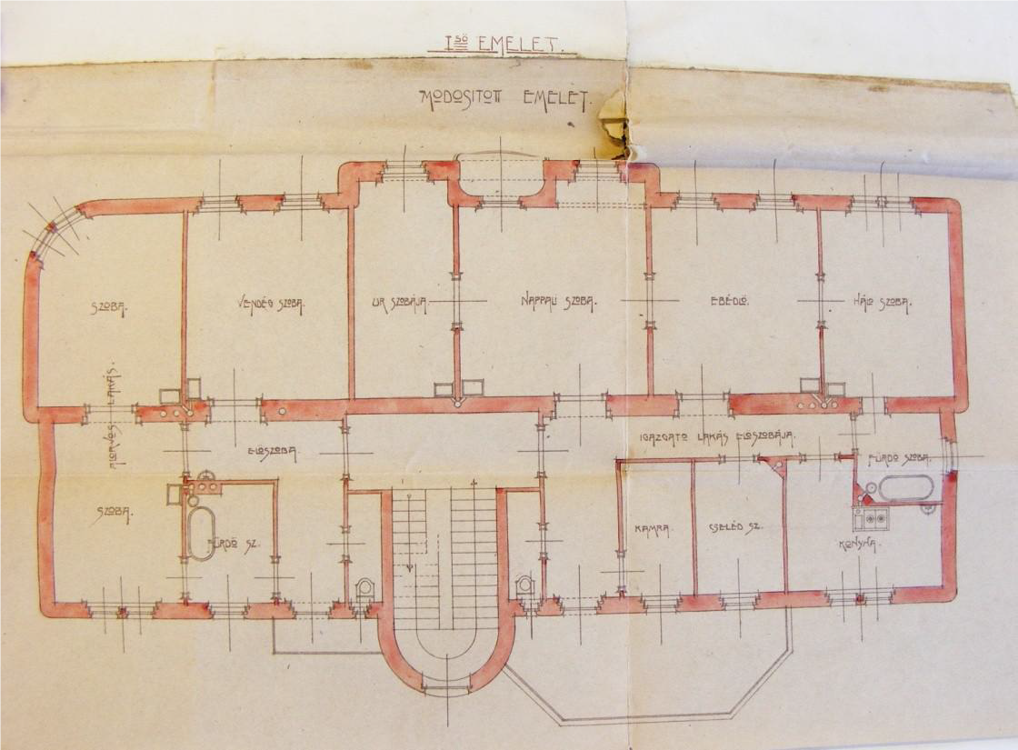 A központi épület I. emeletének engedélyezési terve (Forrás: Pest Megyei Levéltár)  ​