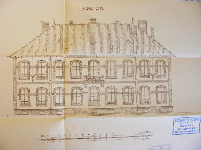 A Baumgarten Sándor által készített engedélyezési terv, amelyet 1903. szeptember 17-én hagyott jóvá a hatóság (Forrás: Pest Megyei Levéltár)
