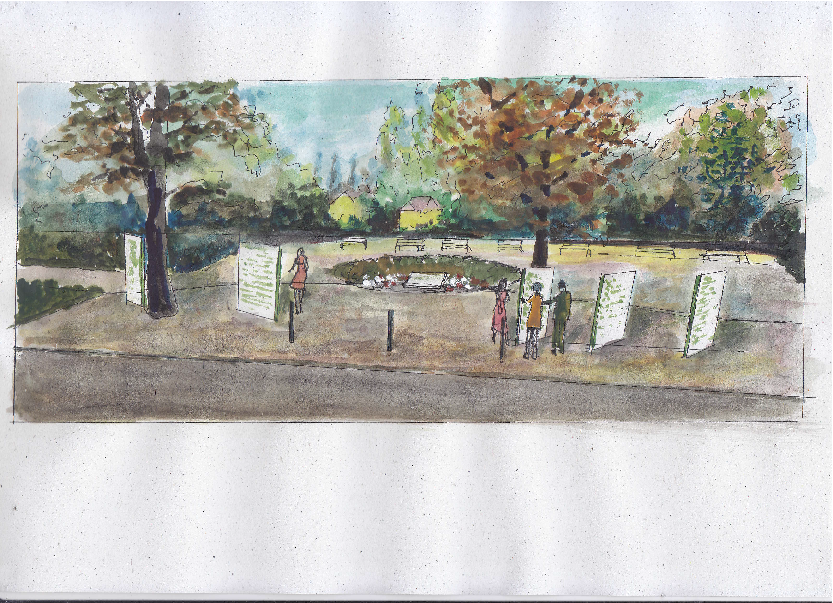 Képaláírás: Az egyes történelmi fejezetek domborműveken jelennek majd meg (Látványterv: Német Nemzetiségi Önkormányzat)