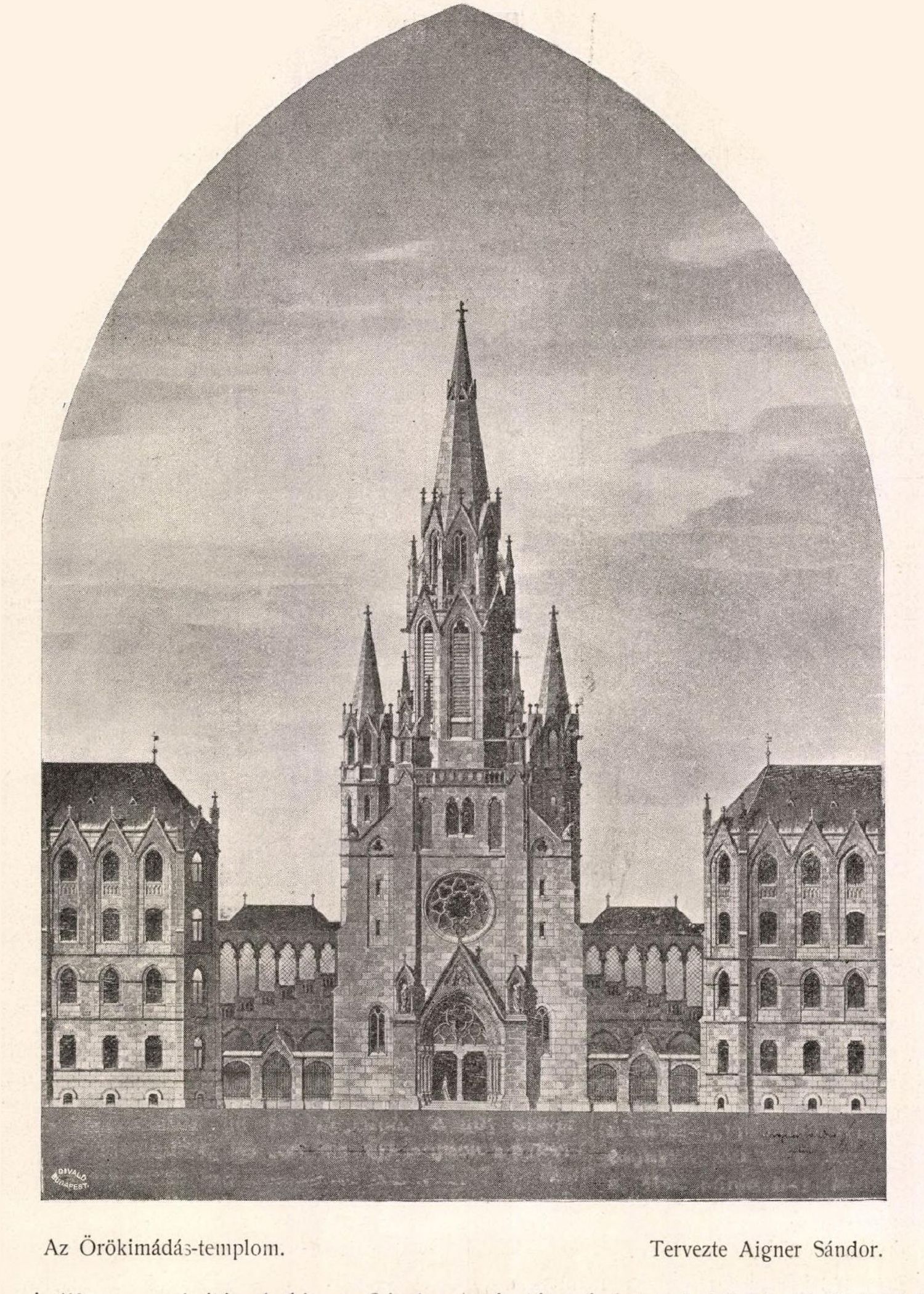 Az építész legjelentősebb műve az Üllői úton álló Örökimádás-templom. A Budapesti Középponti Oltáregyesület már a XIX. század végén tervbe vette egy olyan kápolna állítását, amely kifejezetten az Oltáriszentségben jelen lévő Jézus folyamatos imádását szolgálja. Amikor 1898. szeptember 10-én Erzsébet királynét meggyilkolták, az egyesület úgy döntött, hogy kápolna helyett templomot építenek, mely egyúttal Sisi emlékét is ápolja majd. Erre országos gyűjtés indult, majd annak előrehaladtával 1903-ban tervpályázatot hirdettek: a templomon kívül zárdát, oltáregyesületi székházat és egy kertet is magában kellett foglalnia az épületegyüttesnek. Ezen végre úgy aratott diadalt Aigner terve, hogy az építkezésre vonatkozó megbízással is együtt járt.