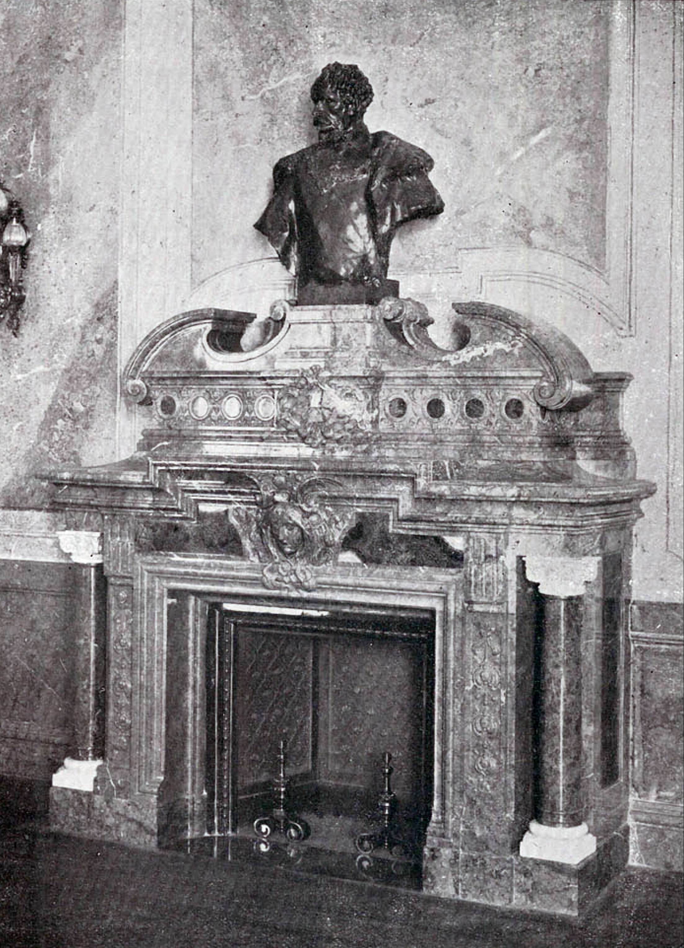 Az Andrássy-előcsarnok kandallója a századfordulón (Fotó: Országos Széchényi Könyvtár)