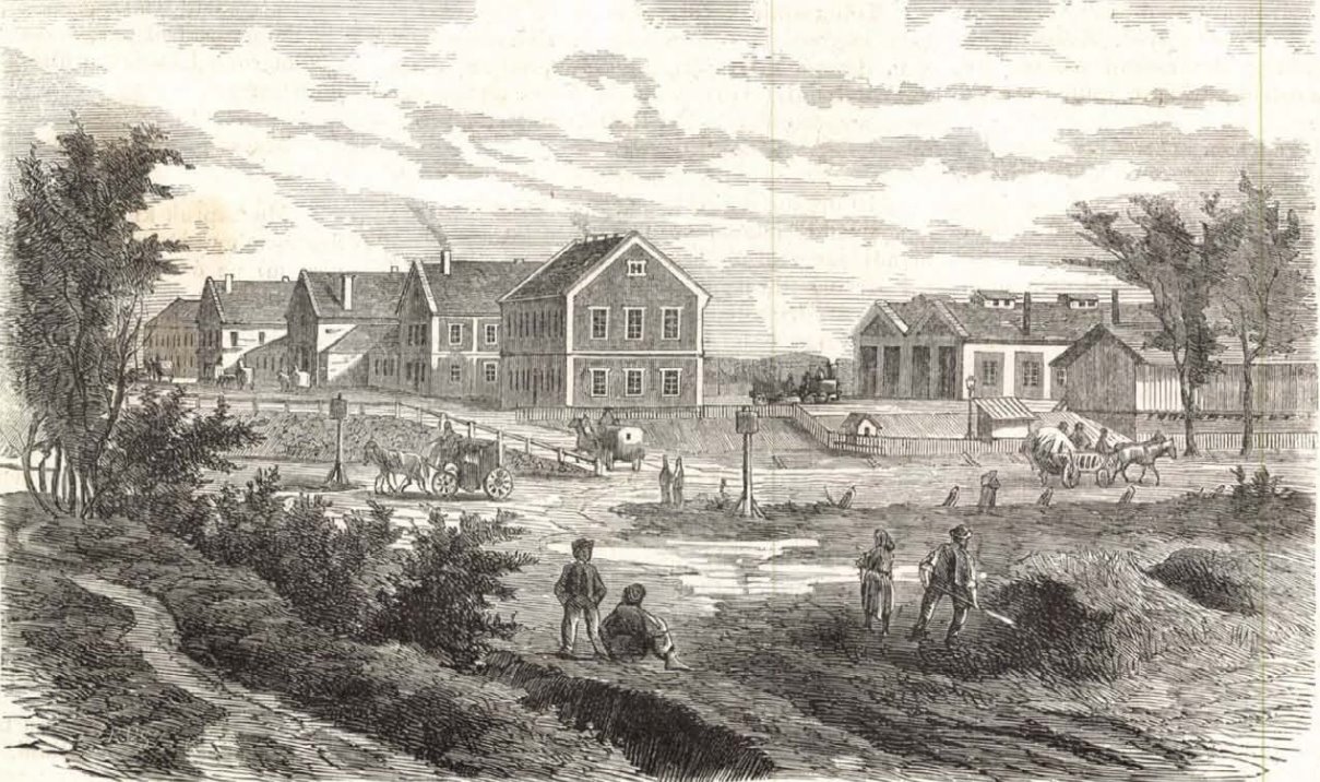 Az Északi Vasút pályaudvara a megnyitásakor, 1867-ben a Vasárnapi Ujság 1867. szeptember 1-i számában