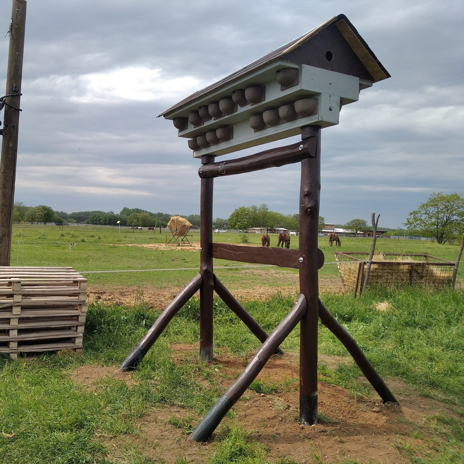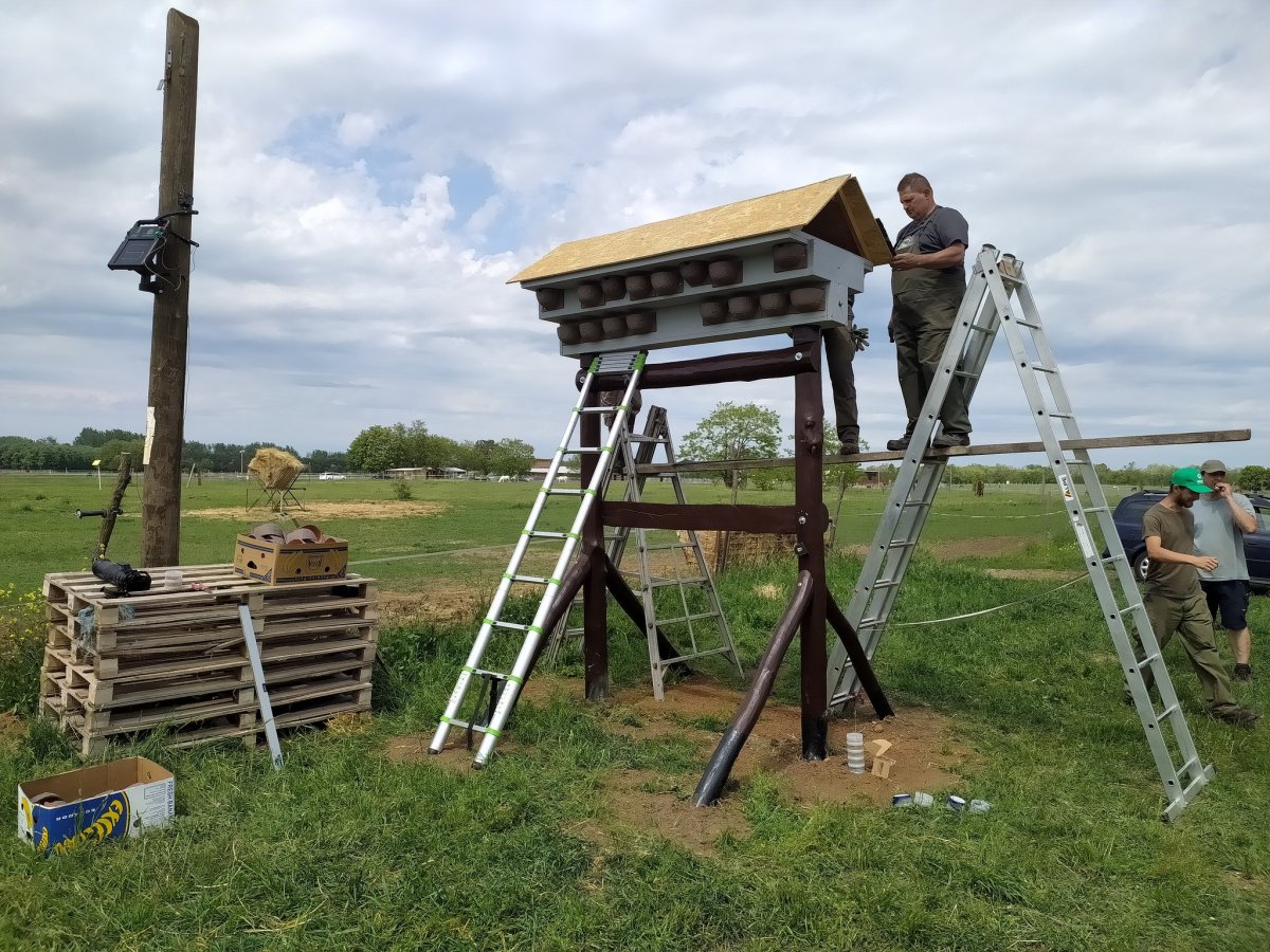 A fecskelakótelep 40 darab műfészekből áll, amely nagyjából 2,5 méter magasságban van (Fotó: Facebook/Főkert)