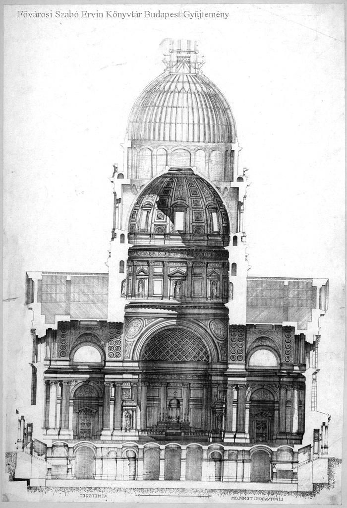 A Szent István-bazilika metszetén látható a külső és a belső kupolahéj is (Forrás: FSZEK Budapest Gyűjtemény)