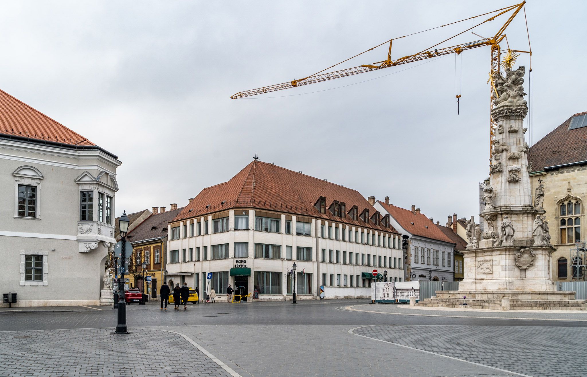 A Burg Hotel épülete a Szentháromság téren 2020-ban, az épülete 2022 elején lebontották (Fotó: Both Balázs/pestbuda.hu)