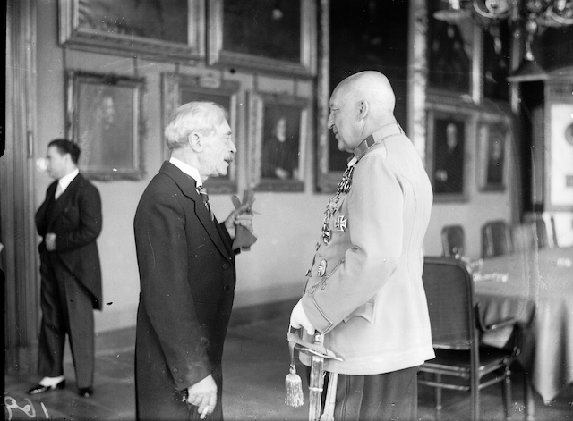 József herceg egyenruhában és mellette fia, József Ferenc a felsőház ülésén 1935-ben (Forrás: Magyar Nemzeti Múzeum Történeti Fényképtár)