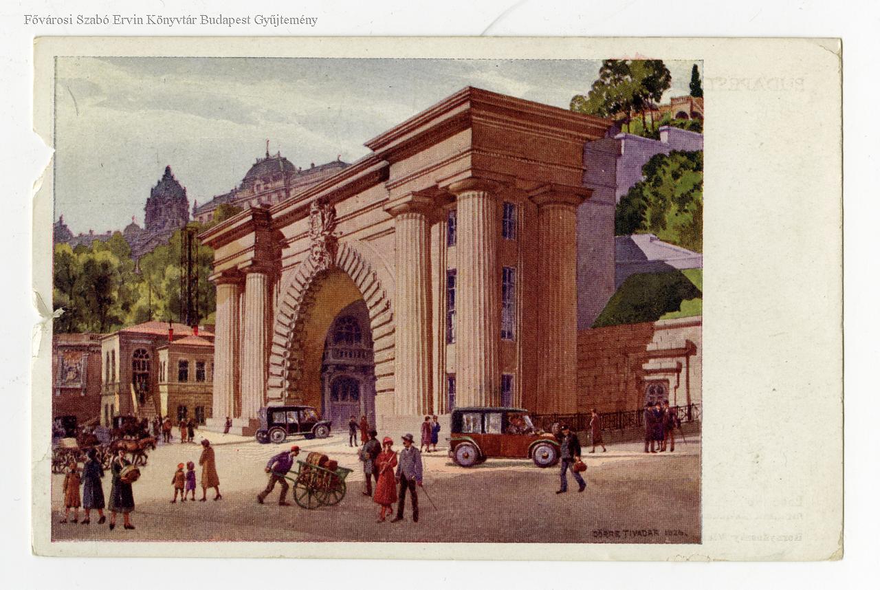A Clark Ádám téri alagút korabeli képeslapon, Dörre Tivadar rajzán, 1926 (Forrás: FSZEK Budapest Gyűjtemény)