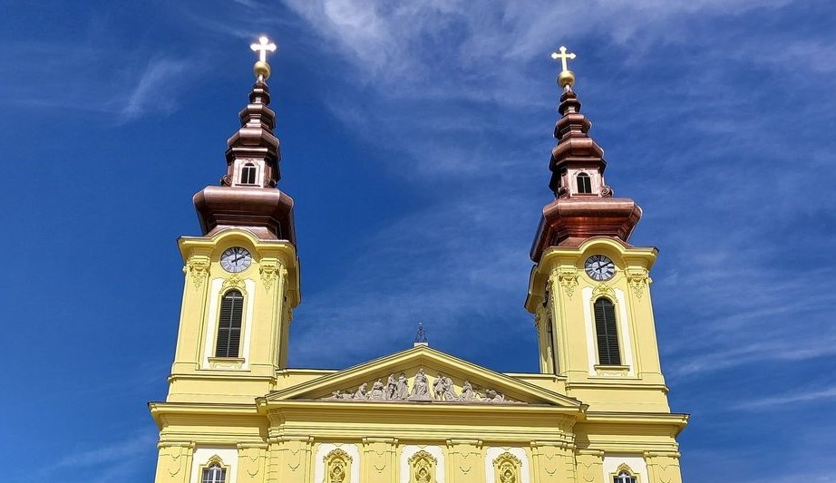 A XI. kerületi Szent Imre-plébániatemplom homlokzatának timpanonja (Fotó: szentimre.hu)