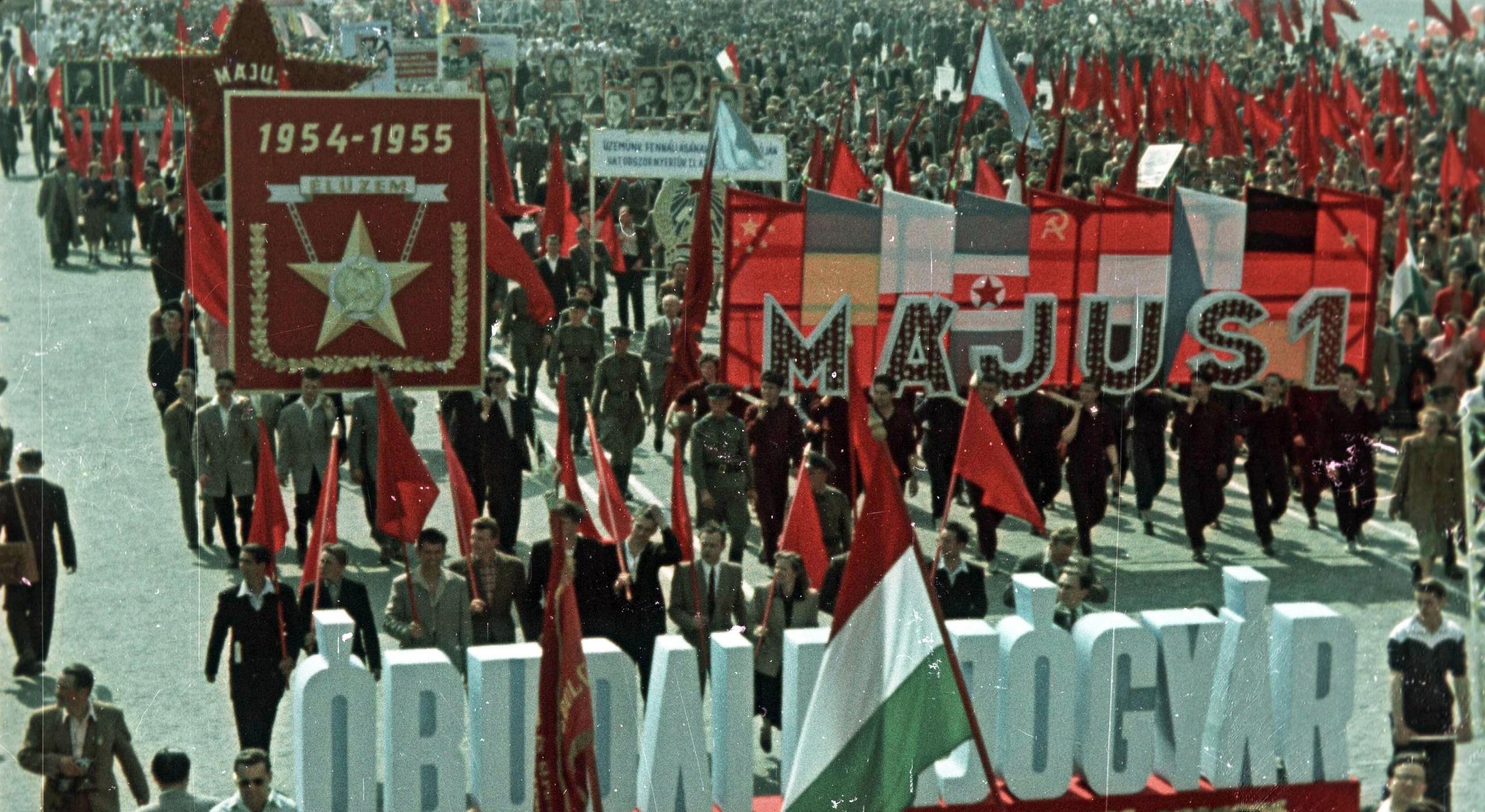 Nyitókép: Felvétel az 1955. május 1-jei felvonulásról (Forrás: Fortepan)