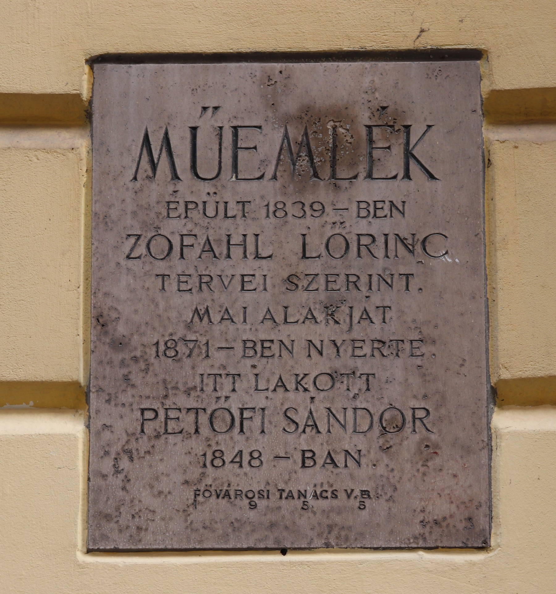 A mai Királyi Pál utca 18. szám alatti ház falán elhelyezett emléktábla Petőfiék itteni tartózkodásának is emléket állít (Fotó: Dubniczky Zsolt/pestbuda.hu)