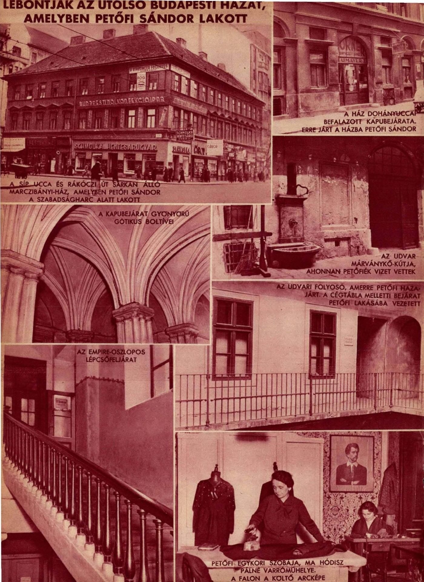 A Marczibányi-házat Petőfi lakásával együtt 1936-ban bontották le (Forrás: Pesti Napló Képes Melléklete, 1936. január 26.)