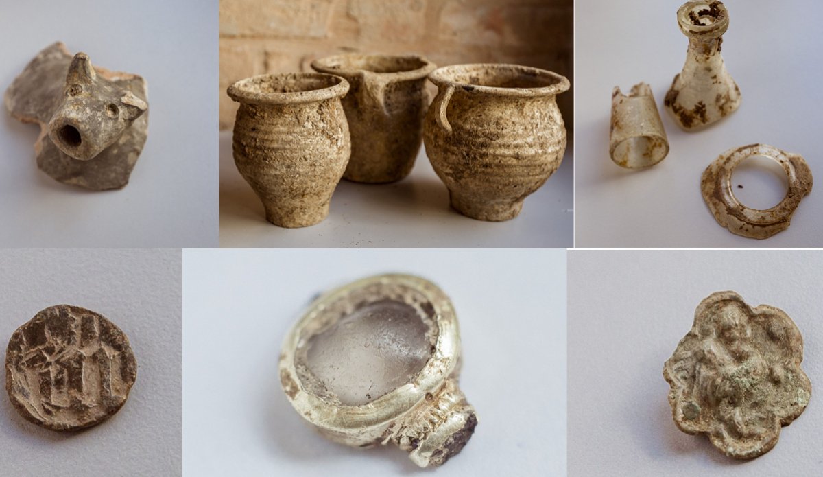 A részletes beszámolóból azt is megtudhatjuk, milyen tárgyak kerültek elő a föld alól. A szakemberek azonosítottak egy virág alakú, lapos bronzveretet, amelyet vékonyabb bőrre vagy erősebb textíliára erősítve viseltek egykor. A bronzverettel együtt egy ólomplombát is találtak, amely a felgöngyölt textil végén a posztó származását és minőségét tanúsította. A királyi palota közelében élő családok gazdag, jól felszerelt háztartásairól tanúskodnak azok a középkori cseppes poharak és palackok töredékei, amelyek az itáliai Velencében készültek a XIV–XV. században.