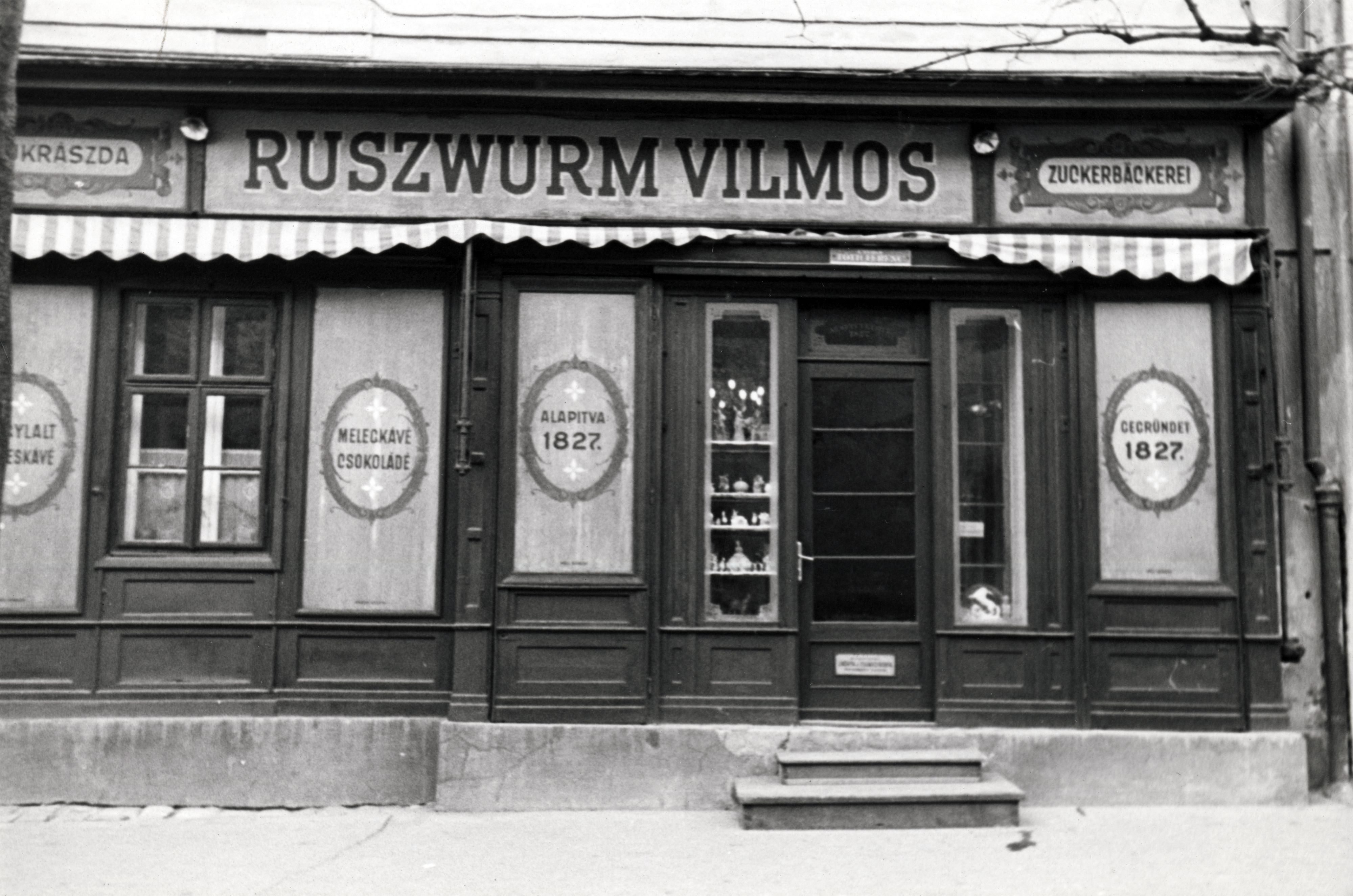 A Ruszwurm cukrászda, Budapest ma is működő  legrégebbi cukrászdája 1827-ben nyílt. A Szentháromság utca 7. számú épület 1939-ben (Fotó: Fortepan/Képszám: 149536)