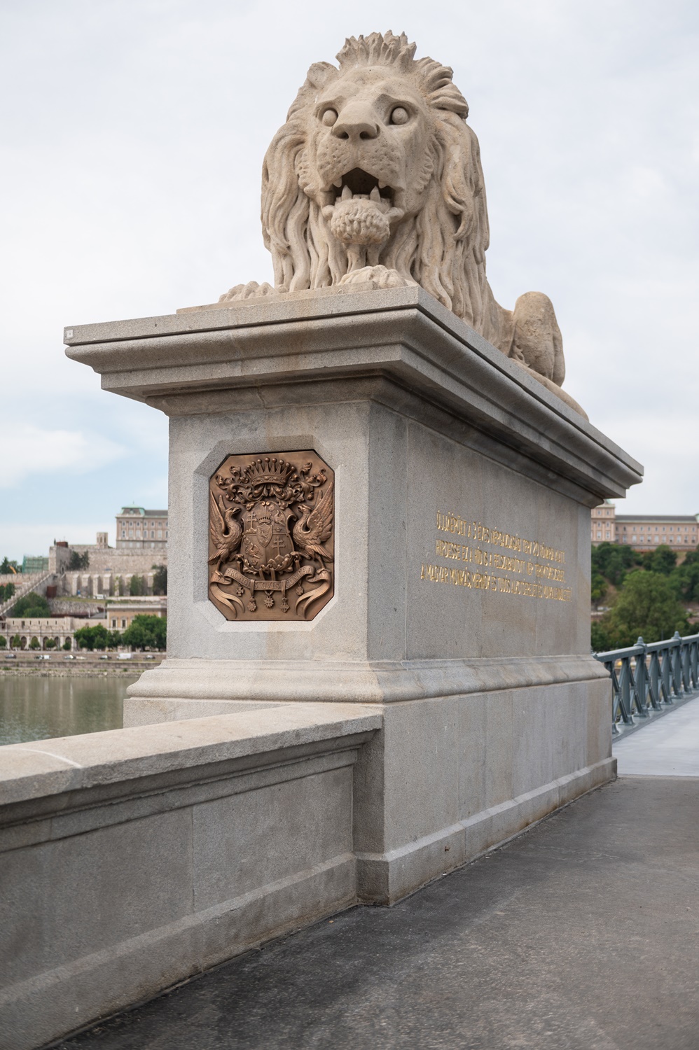 6. Megújultak a feliratok és a kőrészek. A kőfelületet ahol kellett, cserélték, javították a burkolatot és a díszítőelemeket, a pilléren a vízmércék rovátkáit is újravésték (kettő is van, ráadásul eltérnek egymástól), a talapzatokon a feliratokat is megújították, ahol hiányzott a híd neve (Széchenyi lánczhíd – 1915-től viseli ezt a nevet) pótolták.