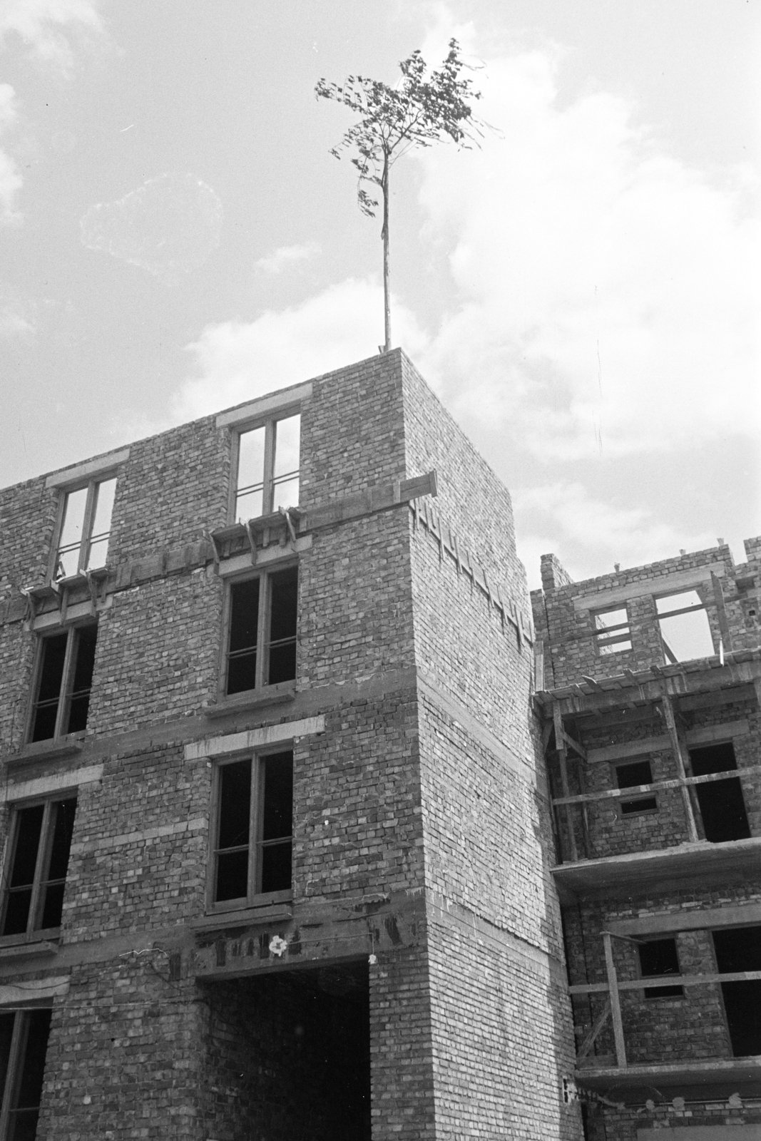 A nyitóképen: Egy ismeretlen épület bokrétaünnepe 1932-ben (Forrás: Fortepan/Képszám: 191238)