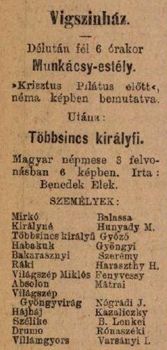 „A koronázás évében, amikor minden remény és Magyarország is feltámadott, Molnár György föltette a Kávéforrásban a kérdést, hogy az ő budai népszínházát is érdemes volna feltámasztani. És mi lelkes ifjak nyomban kötélnek álltunk. Összeszedtük a pénzt, amely előlegül kellett fontosabb színészeknek, akiket messze vidékről kellett felhozatni. […] És ez koronázta meg a vállalatot: Munkácsy Mihály, akkor a legdélibb fiatalember az országban és hozzá fiatal piktor, festett a darabhoz egy erdődekorációt, mely nagyszerű volt, egyetlen hibája, hogy tábortüzek mellett tanyázó rác alakokat is festett reá. Ez volt a Zrínyi, a költő című látványosság, mely csakugyan mozgósította Budapest közönségét.”