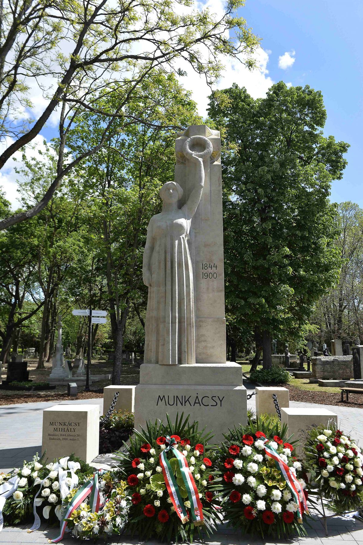 Az egyszerű fakereszten ez a felirat állt: „Itt nyugszik MUNKÁCSY MIHÁLY, élt 56 évet, meghalt 1900. május 1-én”. A sírhely végső kialakítására 1911-ben került sor a Telcs Ede által készített Munkácsy-síremlék felavatásával.